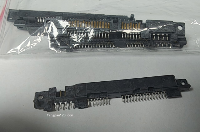 这是由于不认真包装发送同城快递导致的意外,应该是四方责任,硬盘接口质量没有以前那么坚硬了,硬盘盒没有固定住硬盘横向纵向都发生移位,用户自己没有认真包装,闪送途中硬盘发生了严重的晃动。幸好两个希捷硬盘(ST16000NM000J)(ST20000NM001J)只是接口断裂,硬盘本身没受损伤,更换接口之后硬盘正常,工作简单测试所有参数正常。